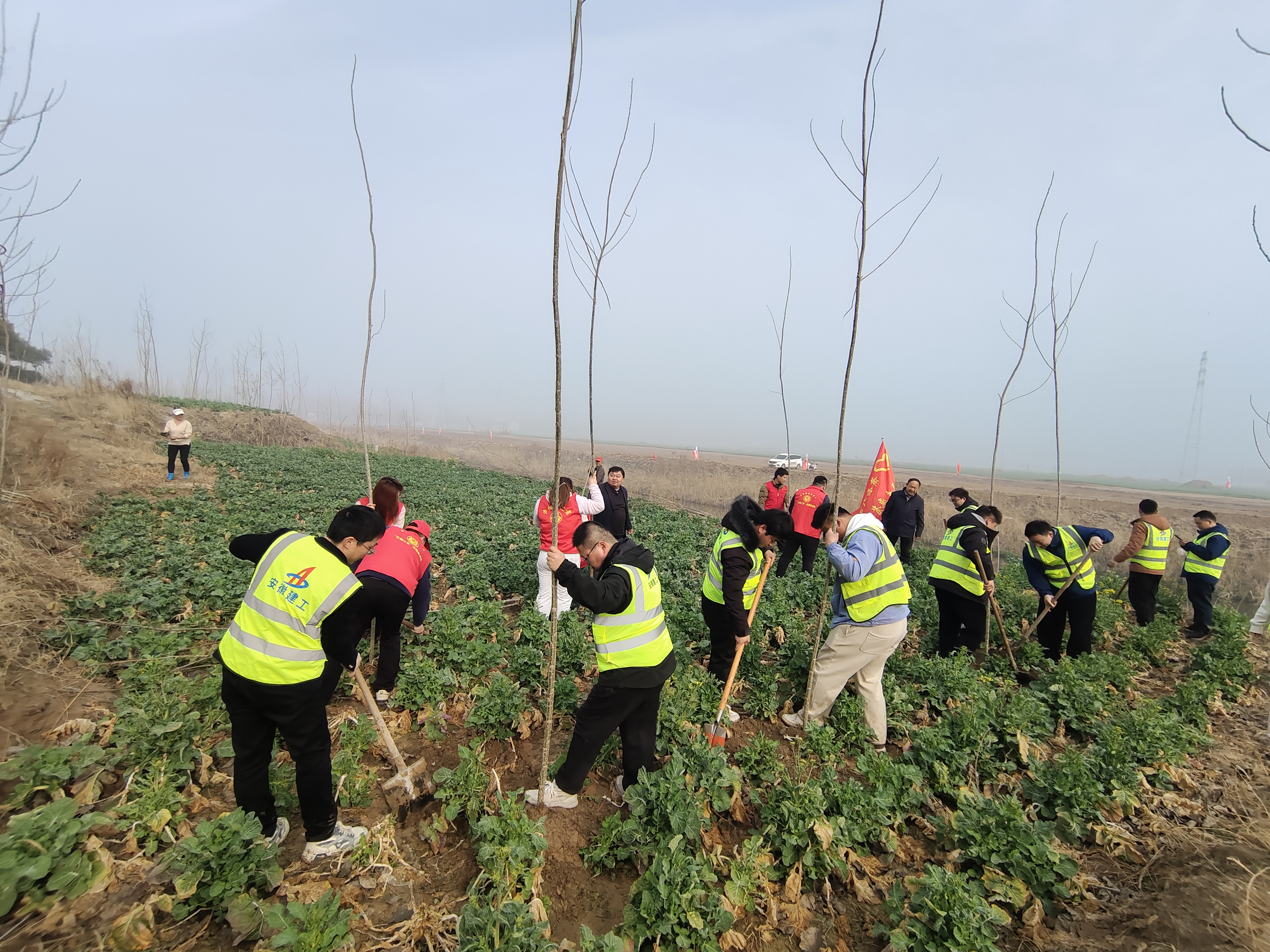 活動現(xiàn)場,項目部員工與鎮(zhèn)政府職工熱情高漲,干勁十足。經(jīng)過一上午的辛勤勞動,百余株新栽種的樹苗迎風(fēng)挺立,為初春的大地增添了勃勃生機。