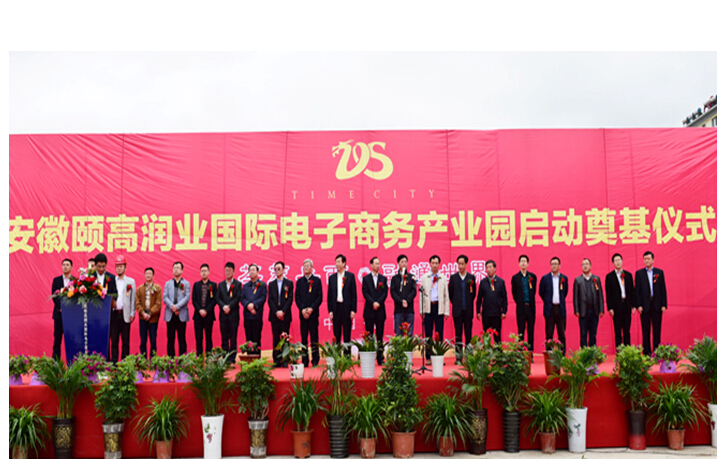 2016年4月24日下午,安徽頤高潤業國際電子商務產業園項目舉行隆重的奠基儀式。中國電子商務協會理事長張會生,中國云計算應用聯盟主席團主席湯兵勇,中國電子商務基地聯盟秘書長邵明,省商務廳副廳長喬興力,安慶市政府副秘書長、商務局副局長干吉安,岳西縣長江春生,縣政協主席儲誠根,縣人大常委會主任程首初,縣委常委、宣傳部長王思甜,副縣長吳小將,頤高集團董事長翁南道、副總裁顧鵬,二建公司黨委書記劉賢奇以及縣商務局、天堂鎮主要負責人出席儀式。中國電子商務協會理事長張會生等先后致辭。