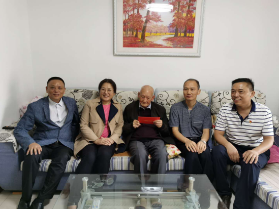 9月22日上午,時逢國慶、中秋雙節到來之際,省醫保局社會保障處主任李永中,省衛生健康委離審辦主任李繼紅,安徽建工控股工會副主席、機關黨委書記、老干處處長李世龍,安徽二建黨委副書記、紀委書記仇多維等一行,來到抗戰老戰士、老黨員、安徽二建百歲離休老干部李輝老人家中進行慰問。