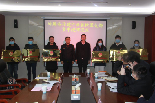 2021年2月2日上午,蚌埠市住房城鄉建設行業首批團支部集中授牌儀式在蚌埠市住建局舉行。會議由蚌埠市住建局副縣級領導王明芳主持。蚌埠市住建局黨委書記、局長王家渠,黨委委員、副局長汪文學;蚌埠市團市委黨組副書記韓見,組織部部長、少年部部長雷蕾;蚌埠市建筑管理處黨委書記、主任唐士全,團委書記韓道斌;蚌埠市住建系統團工委書記鄒振飛同志出席授牌儀式。安徽二建公司蚌埠溪湖湖山春曉、山香安置房項目參加市住建行業首批團支部集中授牌。