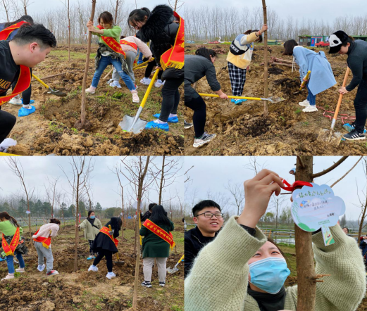 整個活動一直進行到中午12點,他們忘記了寒冷,忘記了勞累,只記得手中的工具和種下的樹苗,在大家的辛勤勞動下,無數株鮮活的生命在微風的吹拂下仿佛吐出了點點綠芽,春天的訊息在枝頭跳動,大家植樹的激情在心底躍動,他們或是在自己栽種的樹旁合影留念,或是在一旁靜靜地看著自己的勞動成果。
