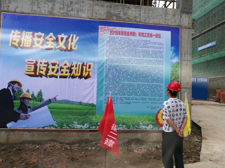 在本次“安全生產月”活動期間,三分公司安建·龍溪山莊項目部將根據集團及公司文件要求,緊密圍繞“強化安全發展觀念、提升全民安全素質”的活動主題,加大安全宣傳力度,組織廣大員工、一線作業人員學習相關法律法規,開展應急演練、致農民工兄弟一封信、播放安全警示紀錄片等一系列活動,創新安全警示教育,推進安全文化建設,精心挑選了一批安全漫畫張貼在施工現場顯要位置,通過各種形式向全體施工人員傳遞“安全生產”的理念,增添了安全月的活動氣氛,扮“靚”了施工現場。同時充分發揮現場質量員、安全員作用,將活動有組織的開展好,將現場的安全質量、文明施工控制好,實現項目部施工生產安全平穩推進。